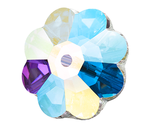 Using crystals, Preciosa sews One-hole flower in They are loose crystals with a flat back that can be sewed onto cloth since they have a thread hole. Preciosa flower-shaped sew-ons are fashioned like daisies, with petals that emerge from the crystal's center and have gentle, rounded edges. The arrangement of the crystal's facets creates a unique focus point for each design by directing them from each petal toward the center.