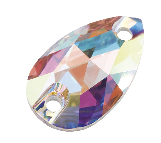 Using crystals, Preciosa sews Pear with two holes in They are loose crystals with a flat back that can be sewed onto cloth since they have a thread hole. Preciosa Pear-shaped sew-ons provide a classic pear shape with a tapering design that is balanced and elegant, with a pointed top and a rounded base. The faceted surface of these crystals is expertly cut, giving them a remarkable and brilliant sheen that reflects light from all directions.